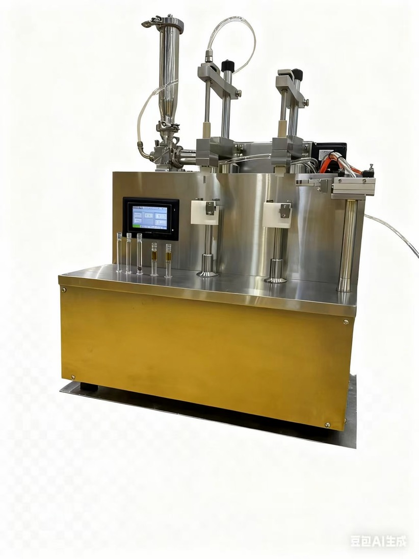 3. Filling: put the pre-sterilized cartridge (or syringe) into the fixed tank manually, and use the photoelectric detector to detect whether the cartridge (or syringe) is present. When filling, first vacuumize, and then keep the vacuum filling needle inserted into the cartridge (or syringe) while filling and rising (driven by a set of servo motors), and use the ceramic rotary valve plunger pump dedicated to gel filling.